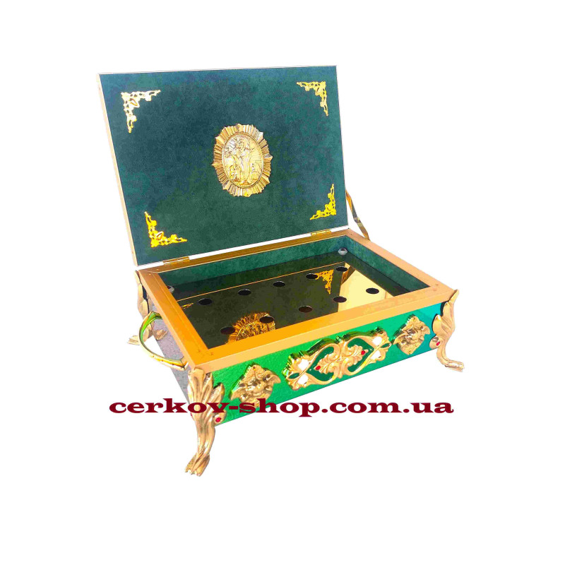 Ковчег для частинок святих мощів на 7-15 мощовиків в зеленому кольорі